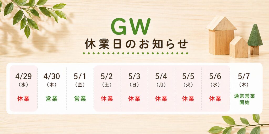 誠に勝手ながら、ゴールデンウィーク期間中の営業日につきまして、下記の通りご案内申し上げます。